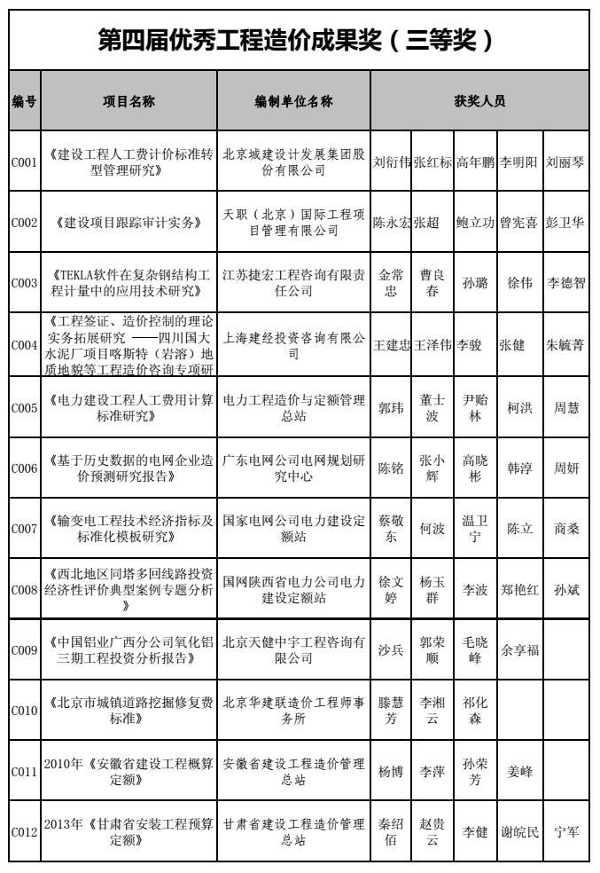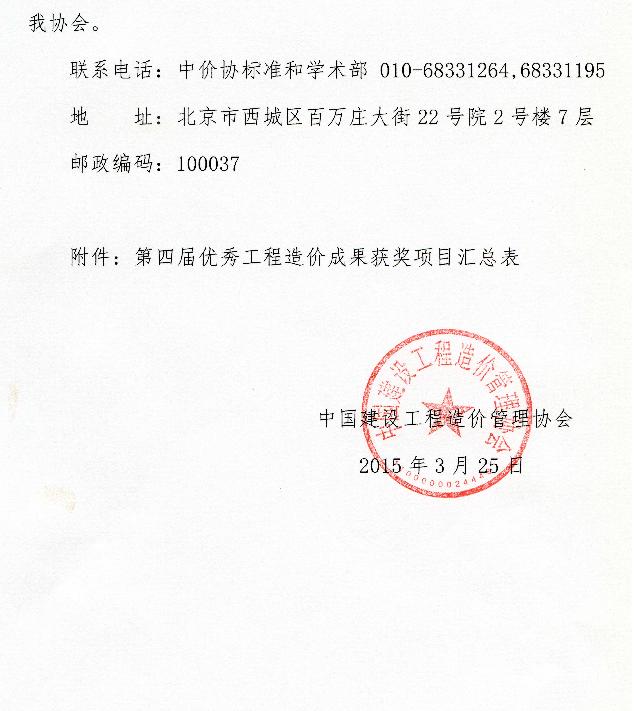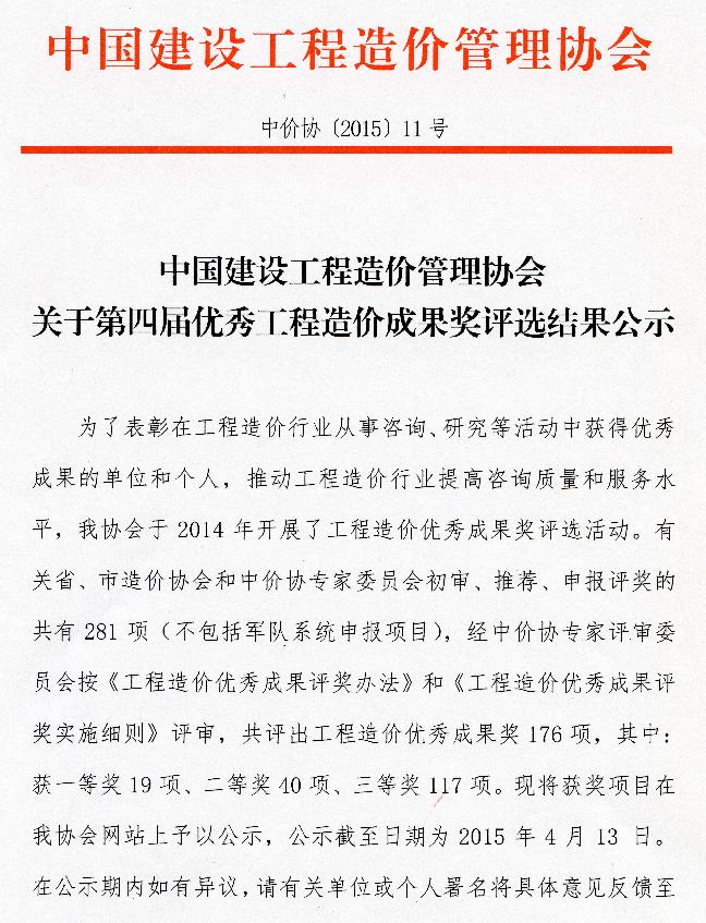 公司造價(jià)咨詢項(xiàng)目榮獲”第四屆優(yōu)秀工程造價(jià)成果獎(jiǎng)“三等獎(jiǎng)