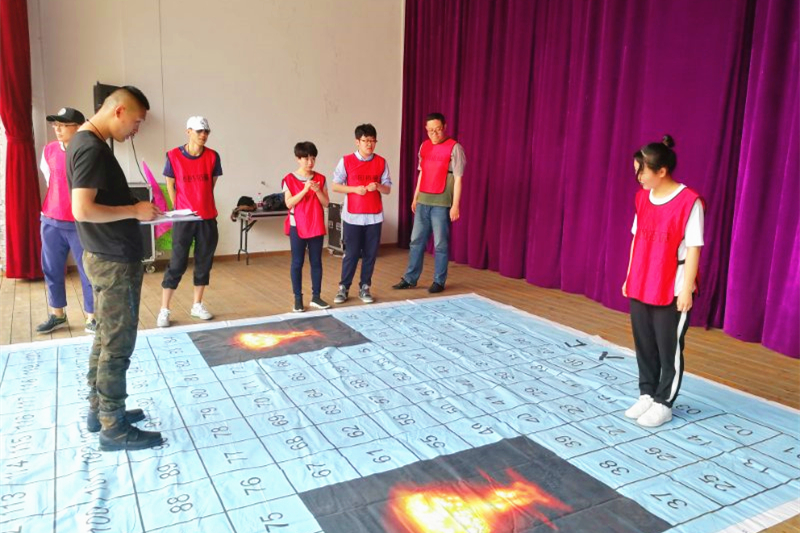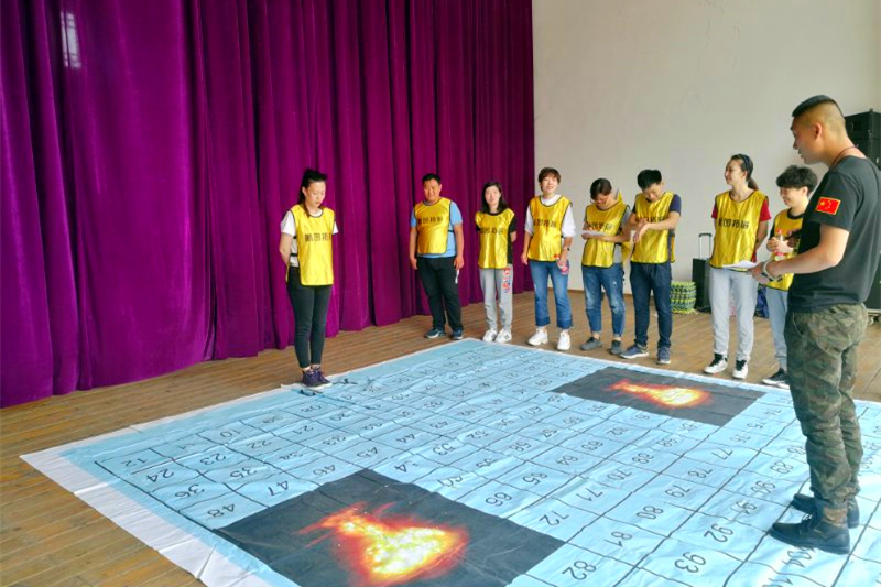 大伙兒帶著對上一個項目的回味,馬上又來到了“穿越雷區(qū)”活動,這完全是一個團隊合作項目。7人一隊輪流上場,以成功避雷到達終點者為勝。