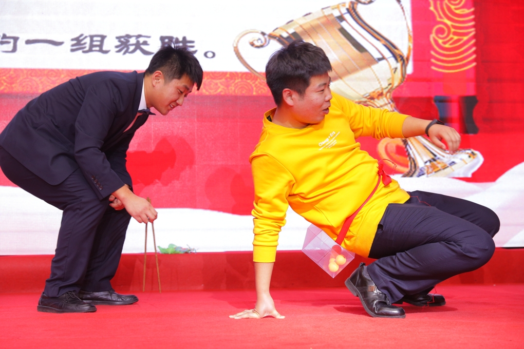 歡樂(lè)的游戲時(shí)刻到來(lái),《你比我猜》、《球球大戰(zhàn)》開(kāi)始了,員工們被“調(diào)動(dòng)”得手舞足蹈,即使被“懲罰”也讓他們捧腹大笑。