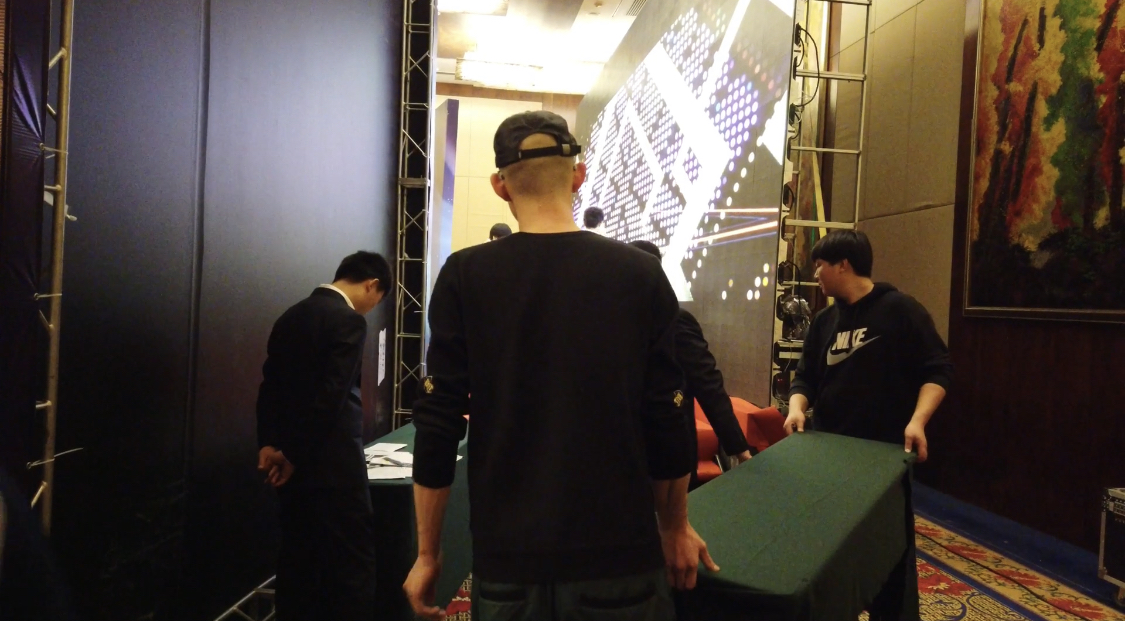 搬道具的伙伴們?nèi)褙炞⒌仃P(guān)注著彩排現(xiàn)場節(jié)目的進(jìn)度,為了隨時上臺切換每個場景的道具做好準(zhǔn)備。