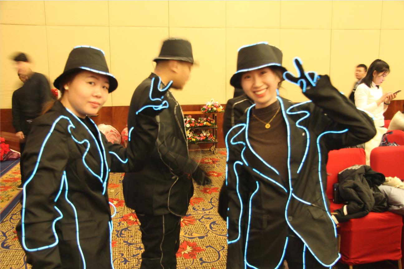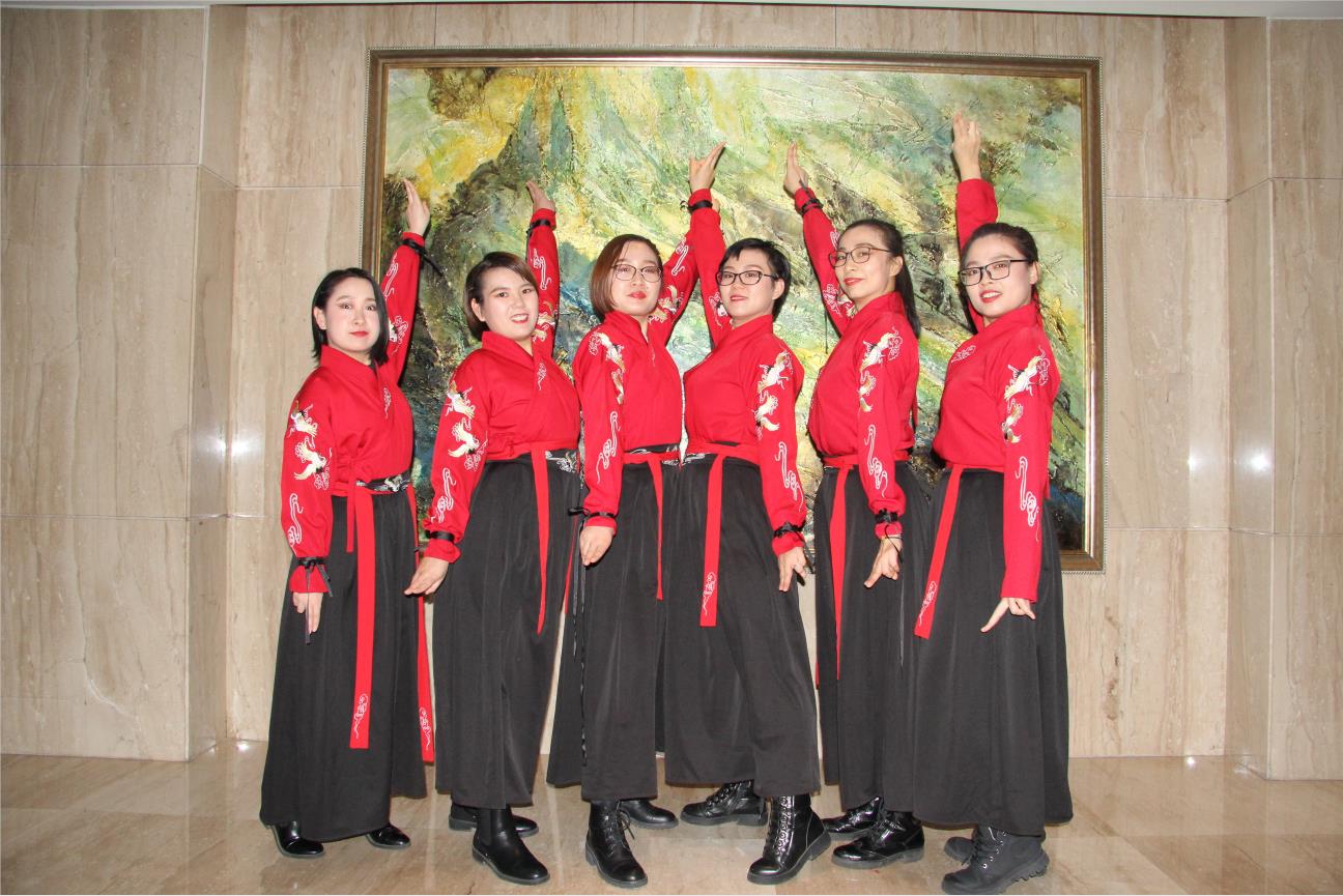 綜合辦公室演出小組的服裝是熱帶風(fēng)格,帶給我們的表演溫度真的很高,他們迅速的在幕布前照了張合影,因?yàn)榕?ldquo;暴露”太多,擾了給觀眾們的驚喜。