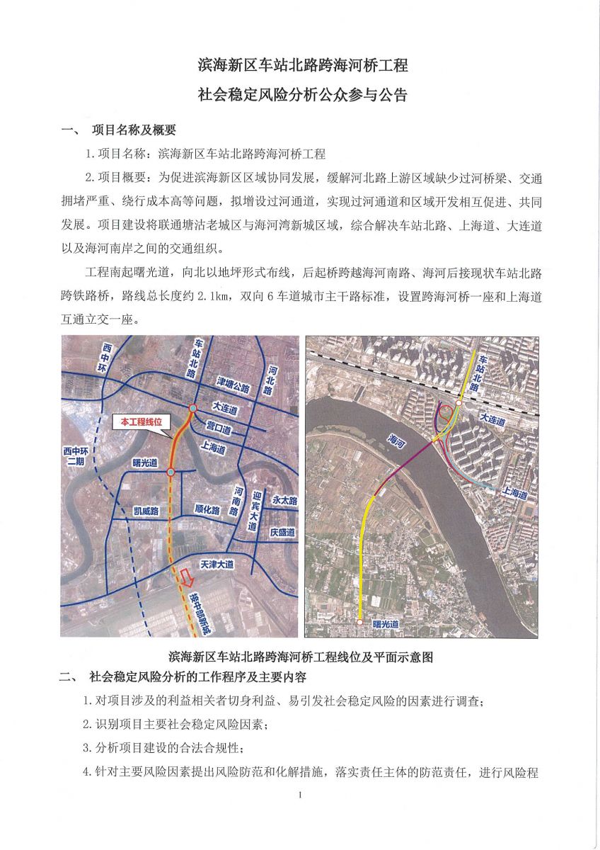 濱海新區(qū)車站北路跨海河橋工程社會穩(wěn)定風險分析公眾參與公告