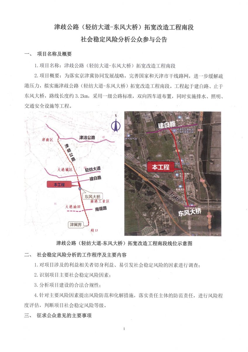 津歧公路(輕紡大道-東風(fēng)大橋)拓寬改造工程南段社會穩(wěn)定風(fēng)險分析公眾參與公告