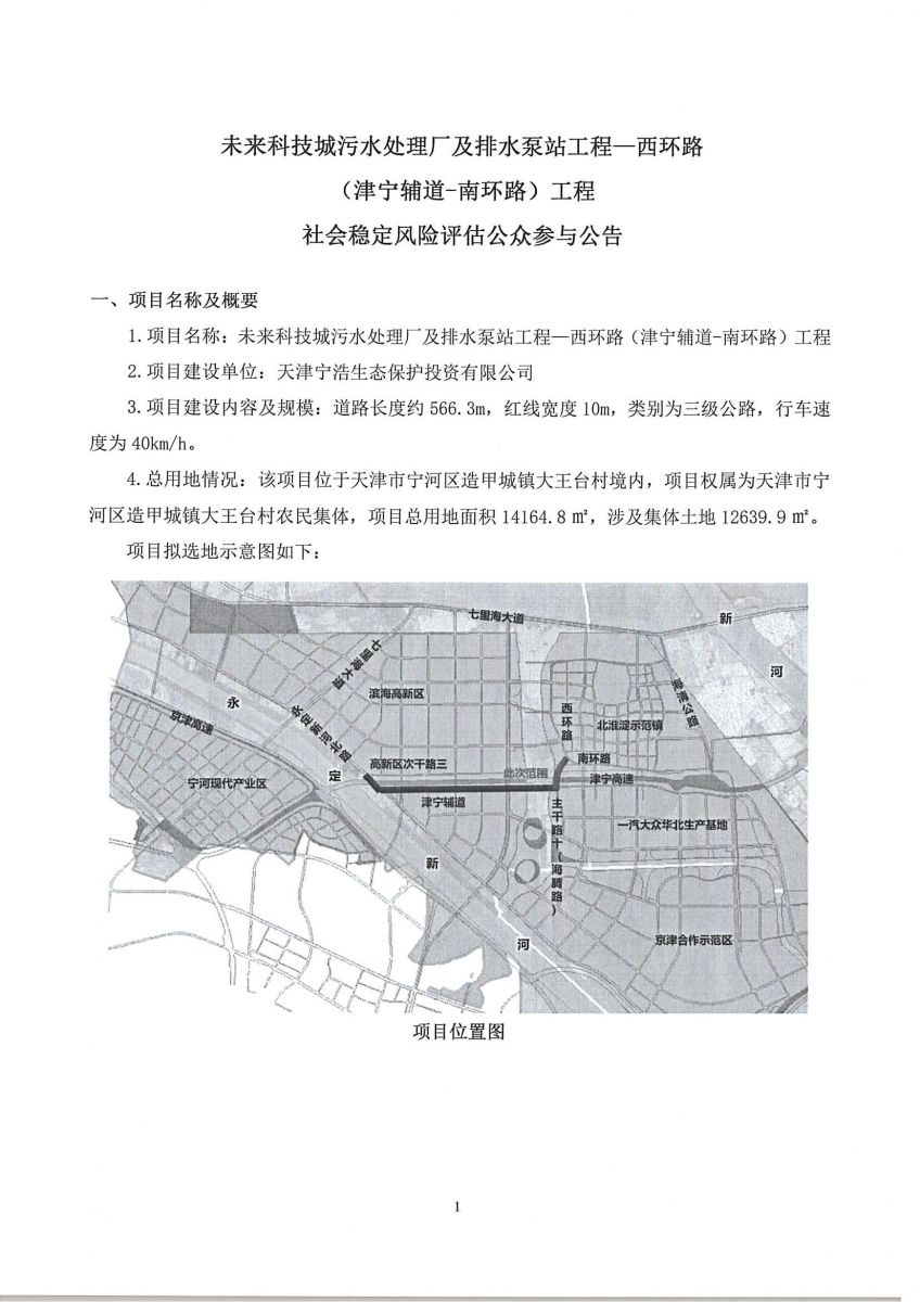 未來科技城污水處理廠及排水泵站工程—西環(huán)路(津寧輔道—南環(huán)路)工程社會穩(wěn)定風險評估公眾參與公告